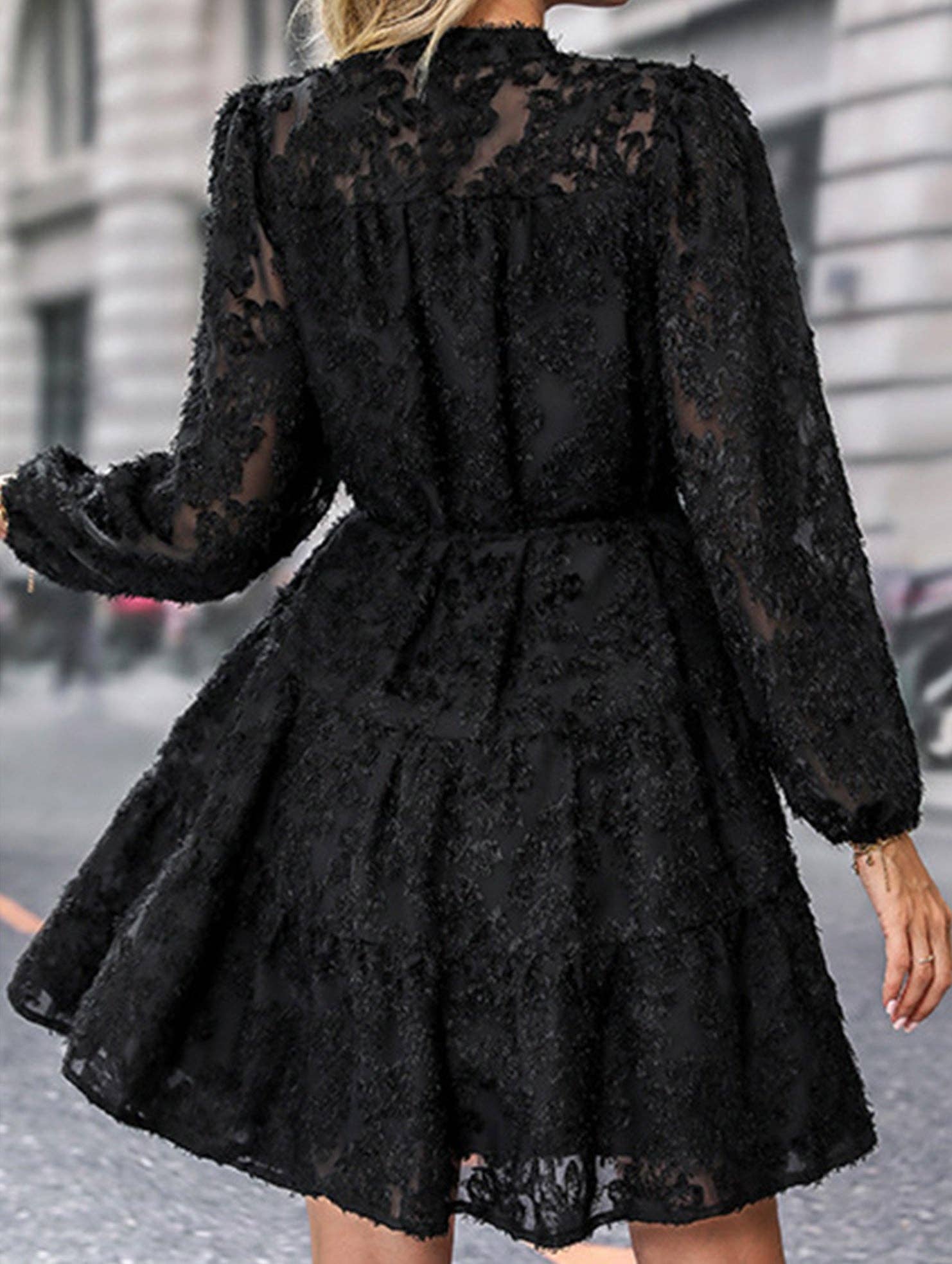 Retro style lace long sleeve puff sleeve dress